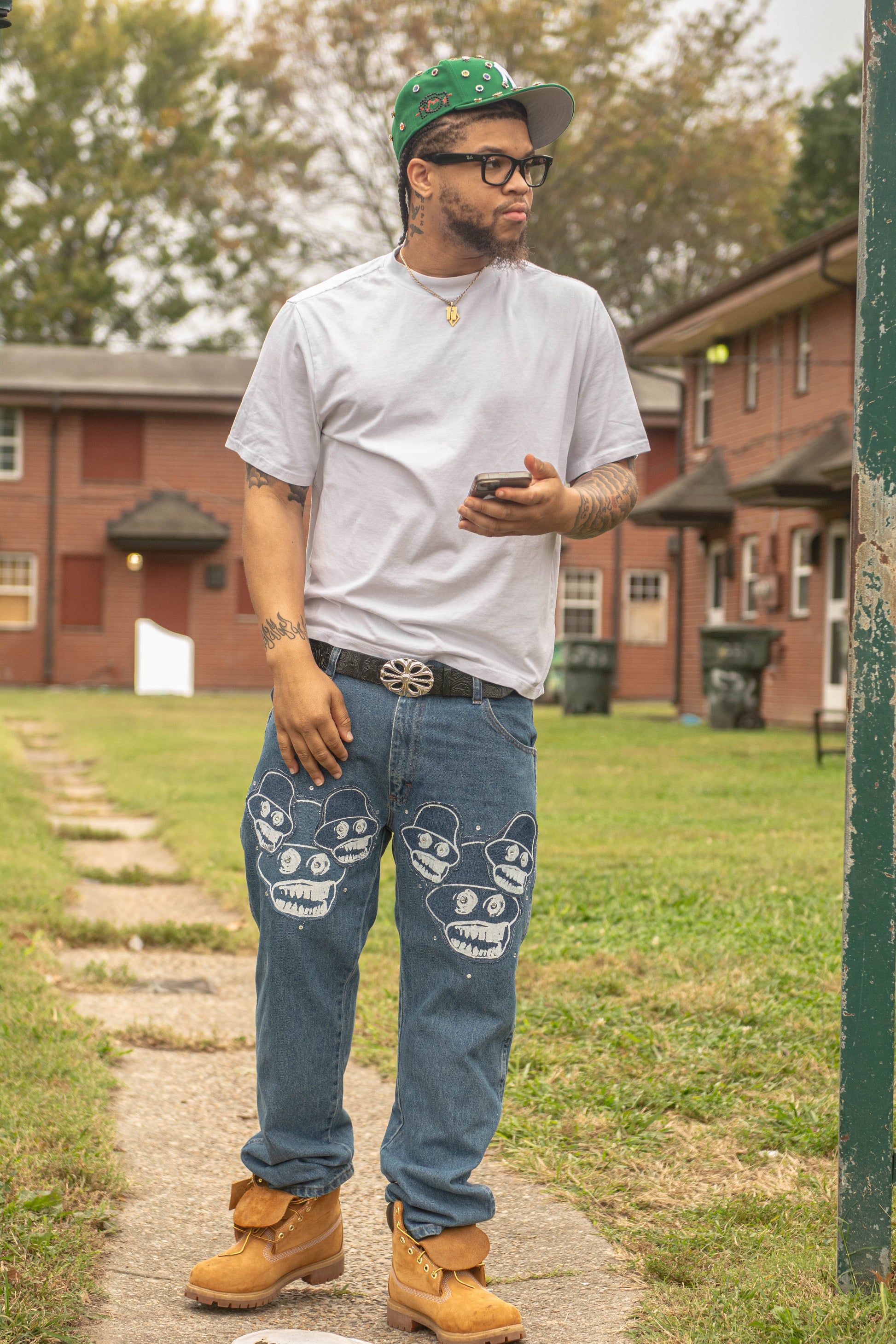 Heavy Weight Denim With Sewed On Patches And Crystals